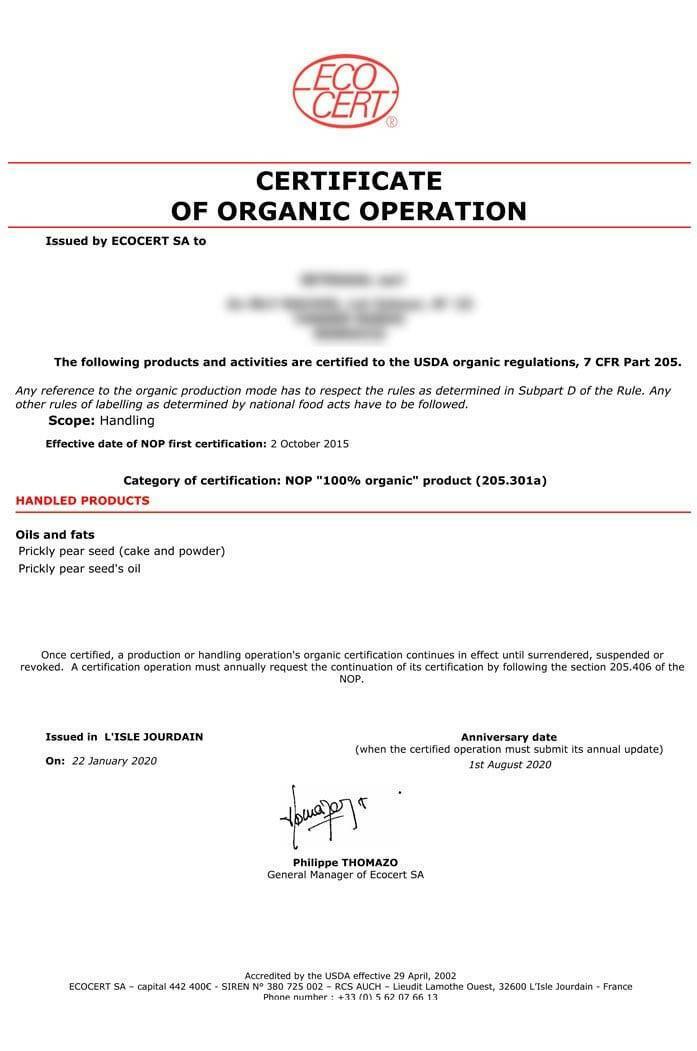 It takesbetween 800 kg and 1 ton of fruit to harvest the seeds needed to produce just one liter of oil of prickly pear seed oil.