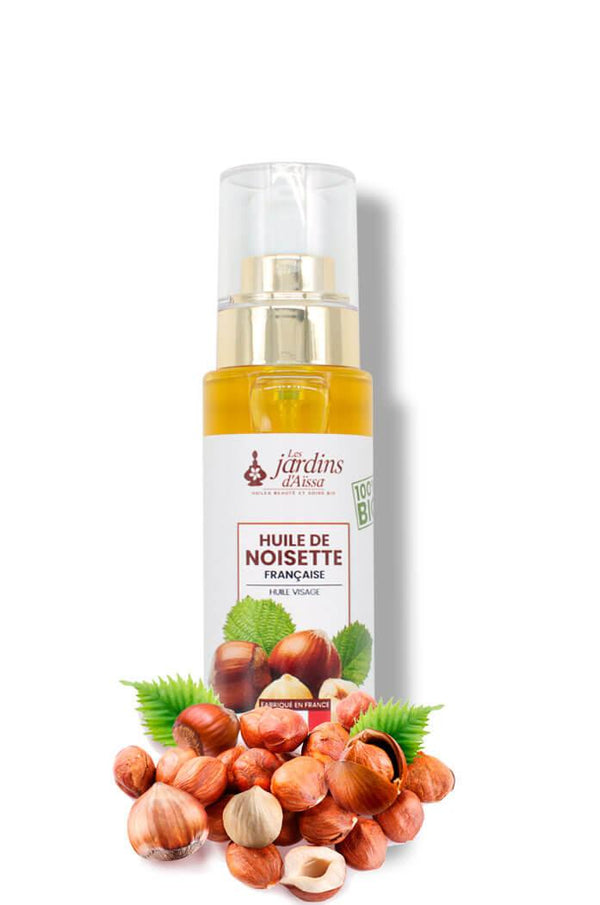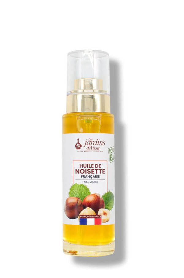 huile de noisette bio naturelle les jardins d'aissa flaconHuile de noisette bio et naturelle végétale française bienfaits