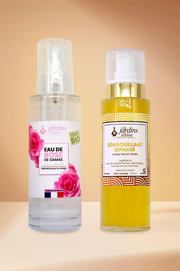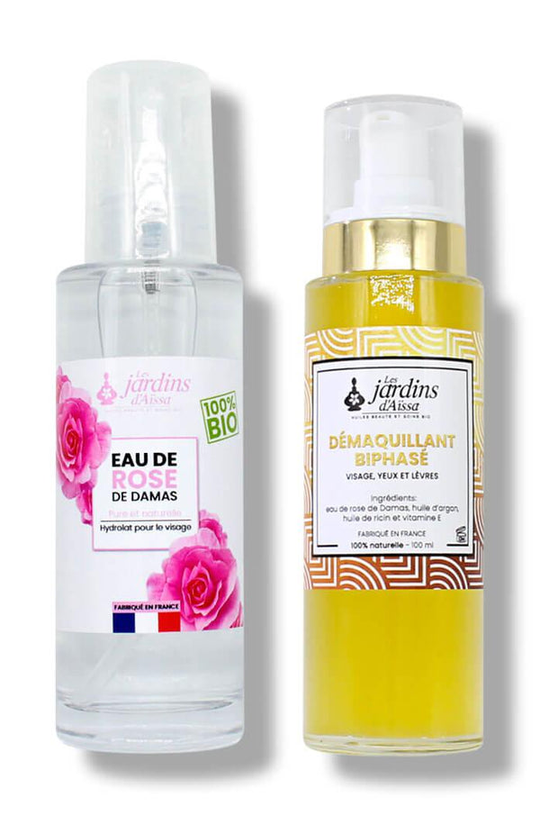 pack demaquillant biphase bio eau de rose de damas naturellepack demaquillant biphase bio eau de rose de damas naturelle